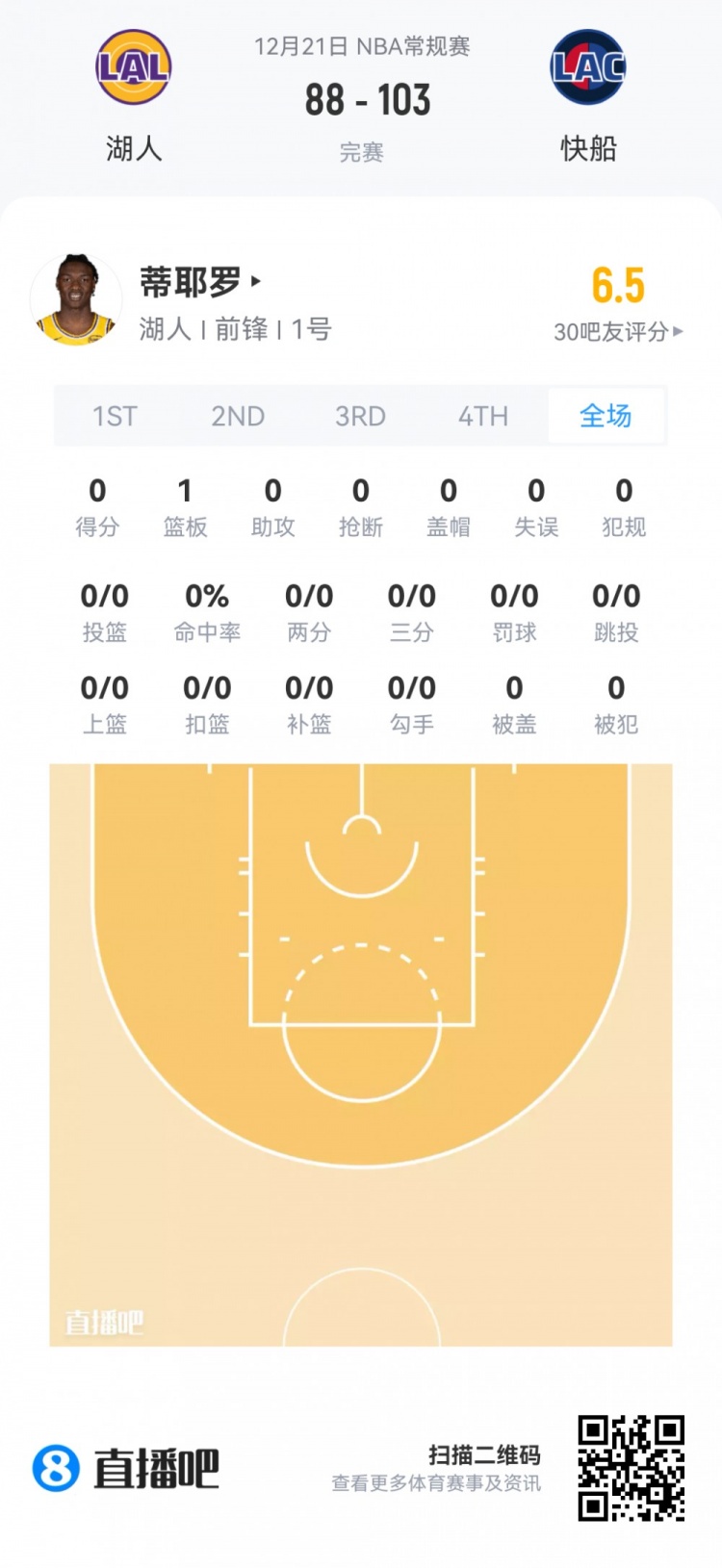 湖人次輪36號(hào)秀阿杜·蒂耶羅 登場(chǎng)5.8分鐘