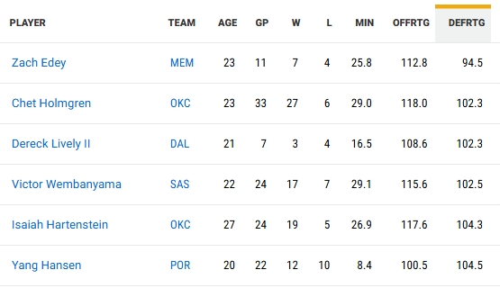 而楊瀚森在場上貢獻最多的是防守方面,楊瀚森本賽季至今防守效率104.5,在全聯(lián)盟出場數(shù)不少于5場,場均不少于5分鐘的球員里排在第31,中鋒中排名第6(前5是埃迪、切特、萊夫利、文班、哈滕)。隊內(nèi)排在他前面的只有沒怎么打過球的塞布爾和庫克。