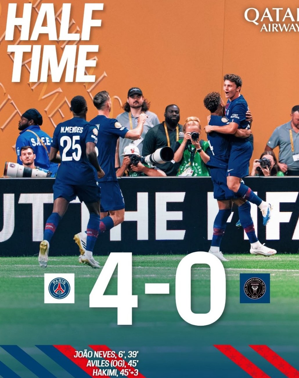 巴黎圣日耳曼vs邁阿密國際半場數(shù)據(jù):
