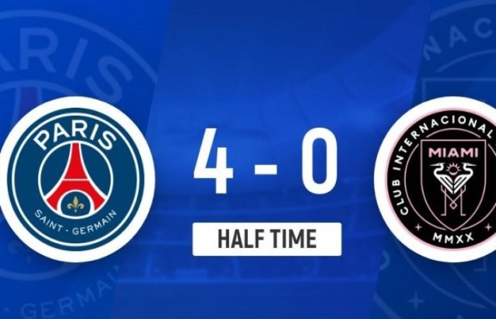 上半場比賽結束,巴黎圣日耳曼暫時4-0領先邁阿密國際。