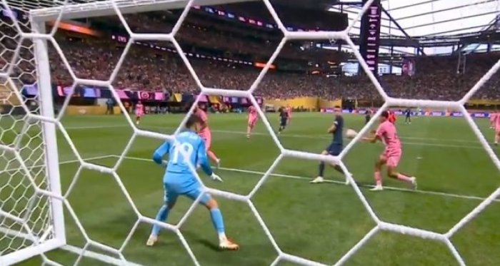 杜埃造阿維萊斯烏龍!第45分鐘,杜埃右路下底傳中,皮球打在阿維萊斯身上折射,隨后飛進自家大門,巴黎圣日耳曼3-0邁阿密國際!↓