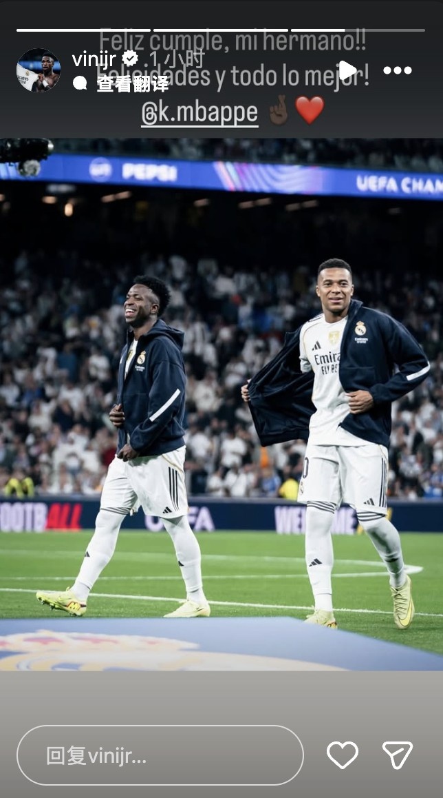 12月20日訊 姆巴佩迎來27歲生日,俱樂部隊友維尼修斯發(fā)文為其慶生。