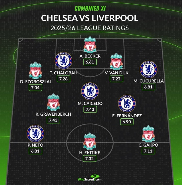 10月4日訊 本輪英超焦點(diǎn)戰(zhàn)利物浦對陣切爾西比賽即將打響,數(shù)據(jù)網(wǎng)站W(wǎng)hoscored也盤點(diǎn)了兩隊(duì)球員本賽季英超評分最高陣容,具體如下: