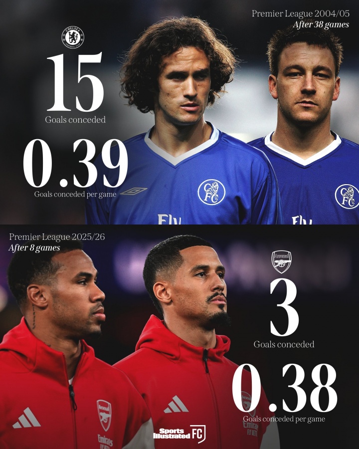 據(jù)OPTA數(shù)據(jù)統(tǒng)計,按照目前的防守效率,阿森納本賽季英超38輪的失球數(shù)將是14個,打破切爾西在2004/05賽季創(chuàng)造的38輪丟15球的英超最少丟球紀錄。