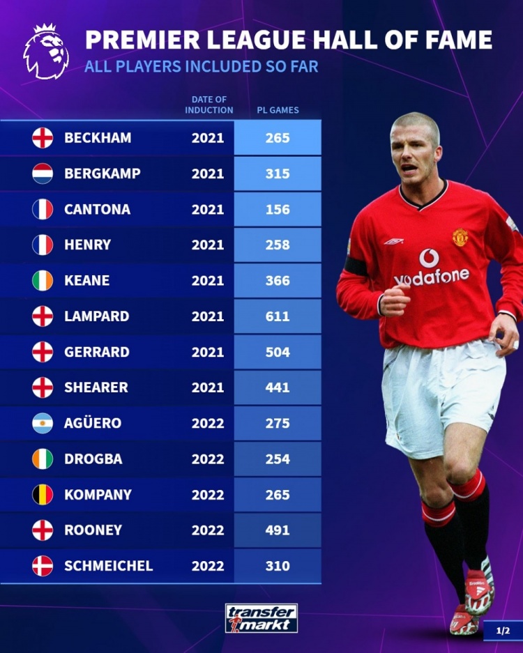 11月4日訊 德轉(zhuǎn)盤點了英超聯(lián)賽名人堂成員的英超比賽參與次數(shù),具體如下:
