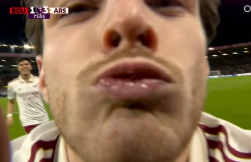 而此前同樣英超第20輪,阿森納在客場3-2戰(zhàn)勝伯恩茅斯的比賽中,賴斯也在第71分鐘進(jìn)球后做出了親吻鏡頭的慶祝動作,兩人可謂不約而同。
