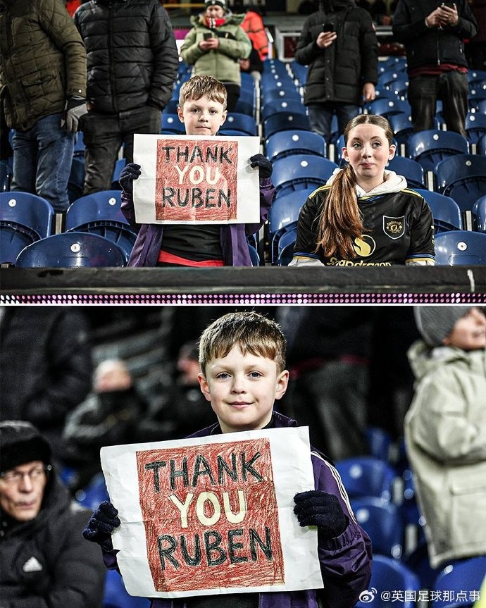 在伯恩利對(duì)陣曼聯(lián)的比賽中,一位小球迷高舉標(biāo)語(yǔ)向阿莫林致謝:“THANK YOU, RUBEN”。