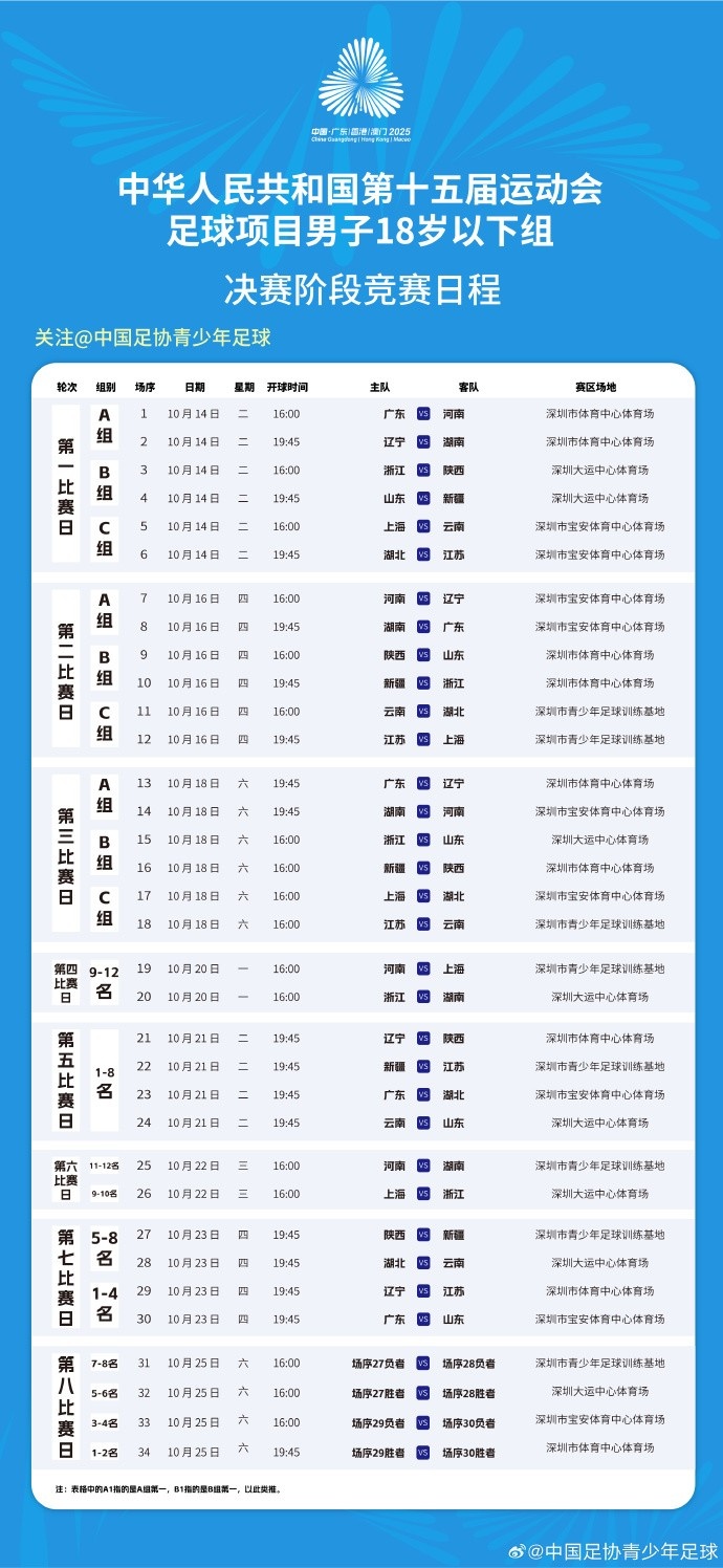 中華人民共和國第十五屆運動會足球項目男子18歲以下組決賽階段