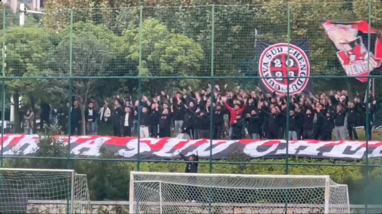 今天,蓉城在訓(xùn)練基地進(jìn)行訓(xùn)練,南看臺(tái)球迷組織來(lái)到現(xiàn)場(chǎng)為球隊(duì)加油打氣。
